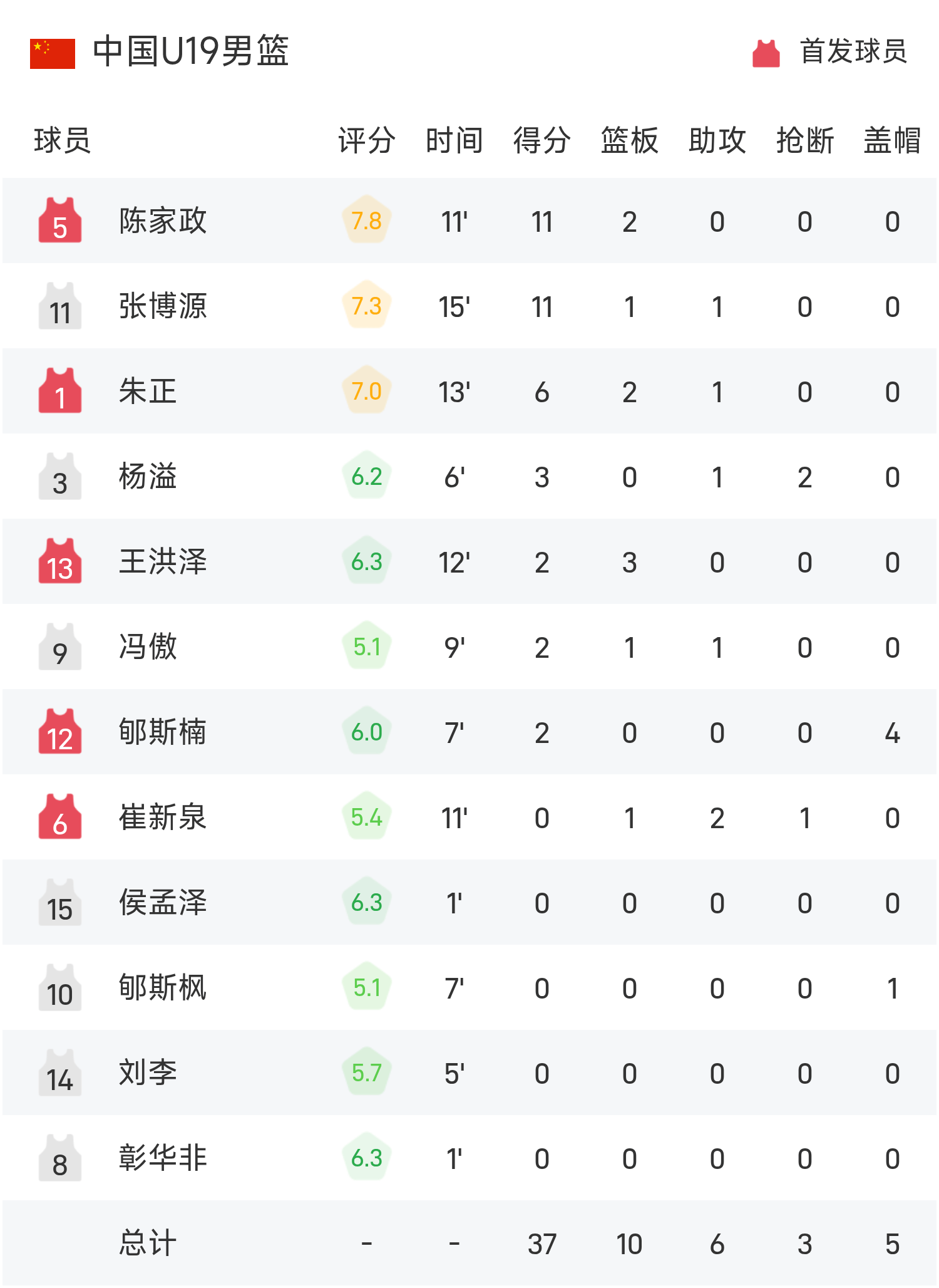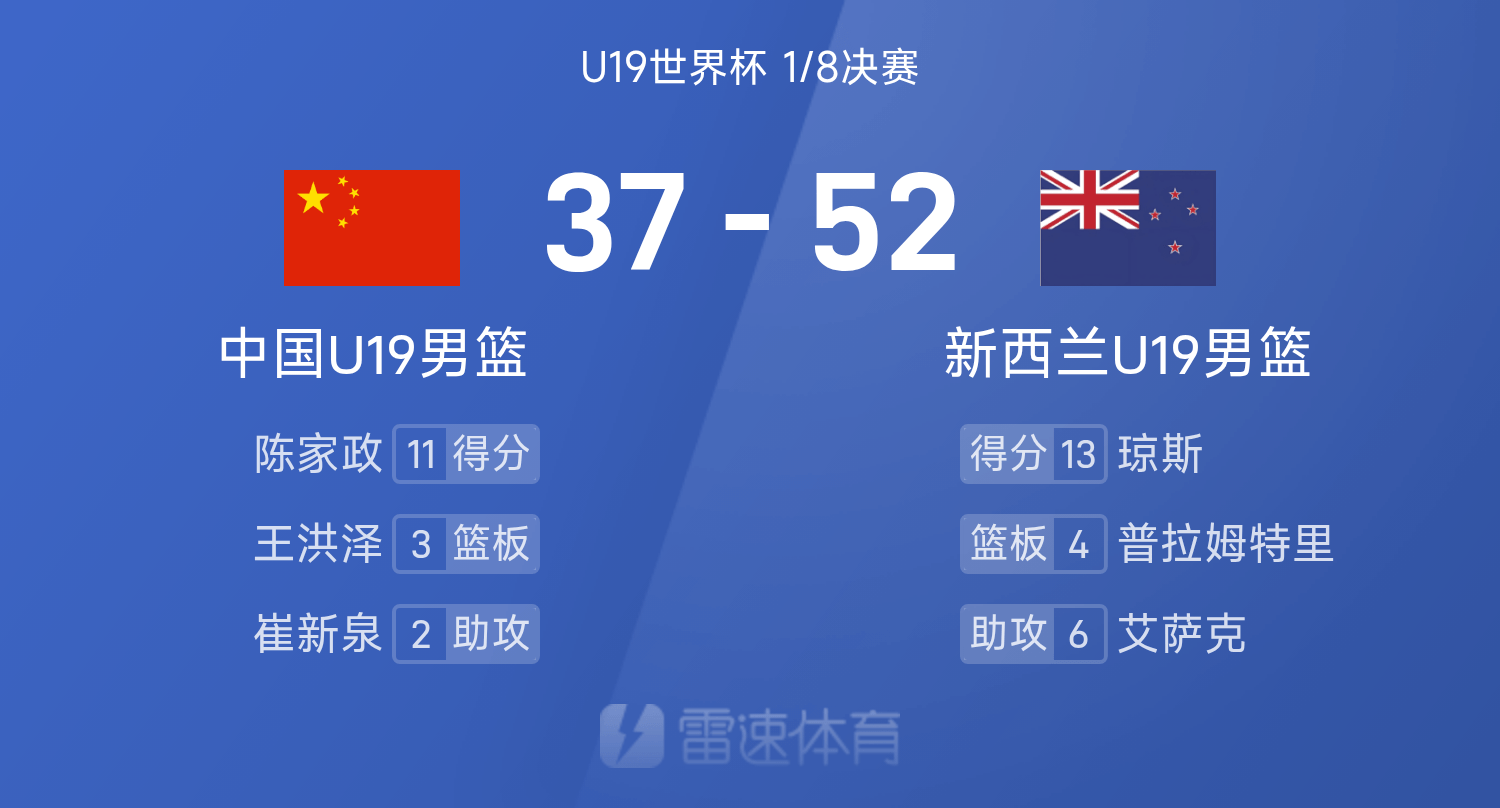 开云APP-U19世界杯半场:陈家政11分&朱正6分2板,中国男篮37-52新西兰